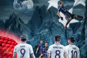 在拜仁官方发布的海报中,拜仁出镜的球员是格雷茨卡、凯恩和萨内,国米出镜球员则是恰尔汗奥卢、劳塔罗以及巴雷拉,其中巴雷拉在攀登山峰。