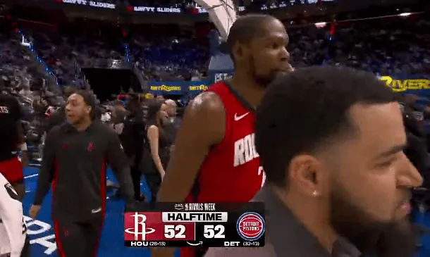 pg电子试玩入口-半场:火箭52-52战平活塞,杜兰特11投6中砍下18分3助攻