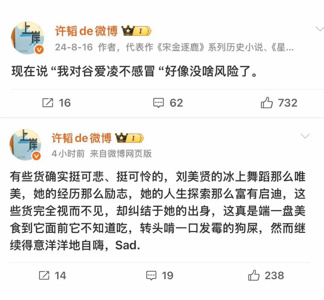 这一次,对谷爱凌的攻击与对刘美贤的吹捧同时进行,他们想树立一个抵消谷爱凌影响力,又符合他们三观的形象。