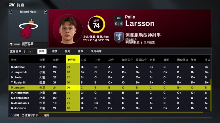 8月30日最新消息 NBA2K26公布了各队球员能力值评分,热火队球员具体数值如下: